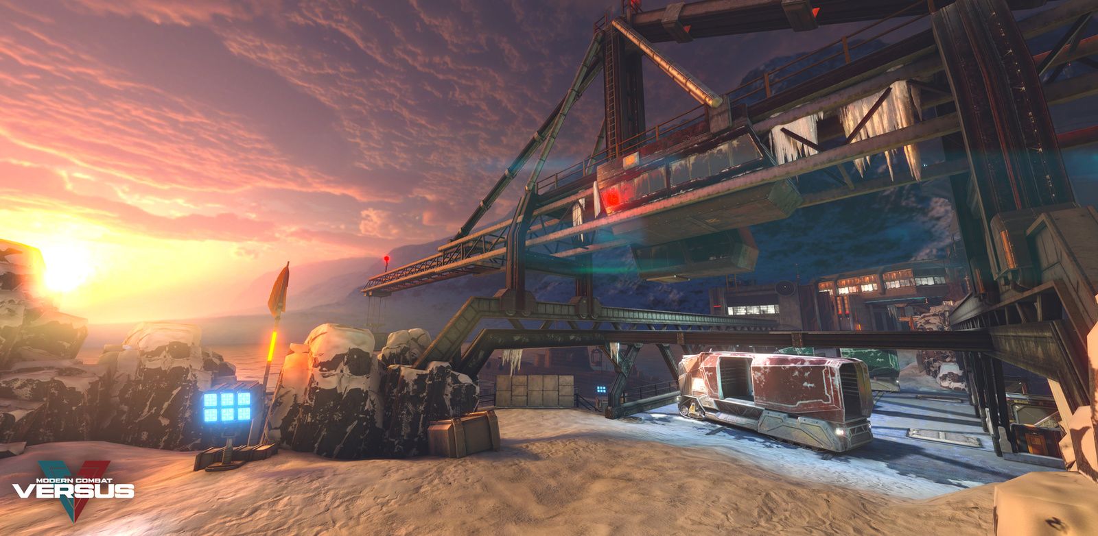 Grâce à l’exploitation de technologies traditionnellement utilisées uniquement dans la production de jeux vidéo pour consoles, Modern Combat Versus dévoile une signature et expérience visuelle uniques, familières aux joueurs de FPS sur console mais encore jamais proposées sur mobile. Modern Combat Versus est ainsi l’un des premiers jeux sur mobile à utiliser la technologie PBR (Physically-based rendering) permettant de reproduire fidèlement la réponse de matériaux face aux sources de lumière et réflexion. Associé aux technologies IBL (Image Based Lighting) et HDR (High Dynamic Range), ce procédé offre un visuel fidèle à la réalité, intégrant des jeux d’ombres et lumières d’une qualité, qui jusqu’ici sur mobile, n’avait jamais été atteinte. Coté affichage, les environnements atteignent 1 million de triangles, équivalent aux FPS sur PS3 ou Xbox 360, et le savoir-faire unique de Gameloft en terme d’optimisation pour plateformes mobile permet d’offrir un rendu visuel comparable aux consoles « current-gen ». Les panoramas en toile de fond dans les niveaux sont des images qui elles aussi ont été rendues à partir de modèles en 3D. Ces scènes sont composées de plusieurs milliards de triangles. Les personnages sont quant à eux issus d’une méthode de création rigoureusement identique à celle des jeux console AAA actuels.
